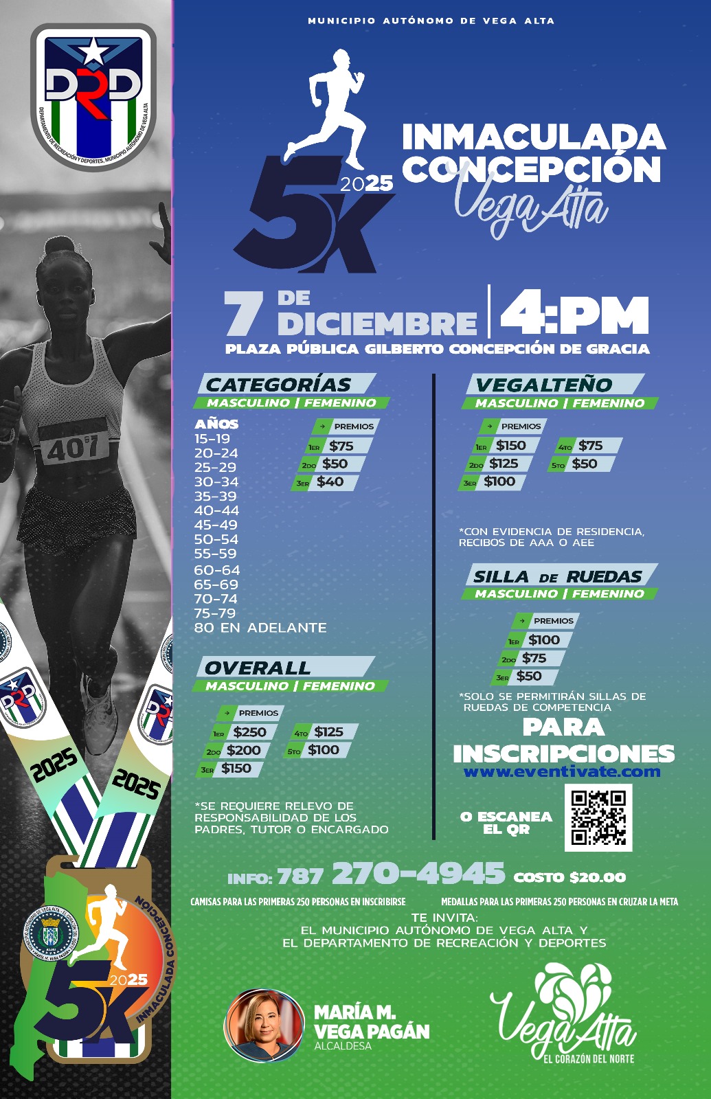 El Municipio Autónomo de Vega Alta invita a su 5k Inmaculada Concepción!