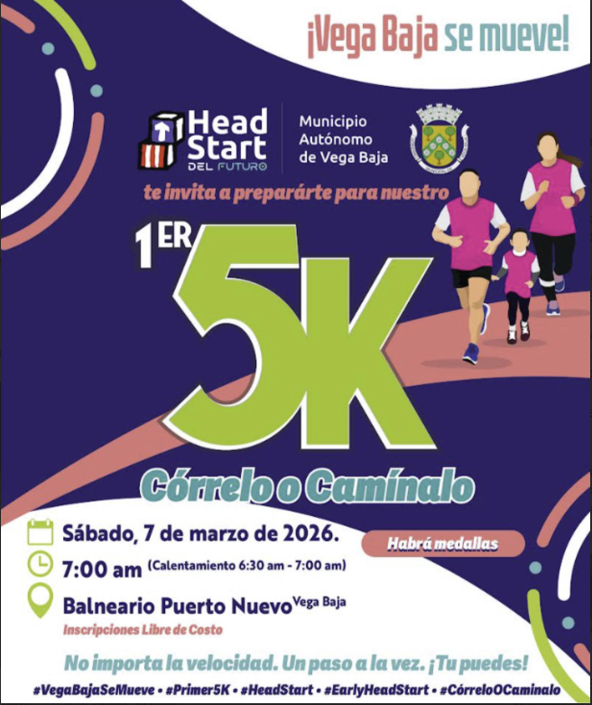 El Programa Head Start & Early Head Start del Municipio de Vega Baja te invita a prepararte para nuestro 1er 5K – Córrelo o Camínalo.