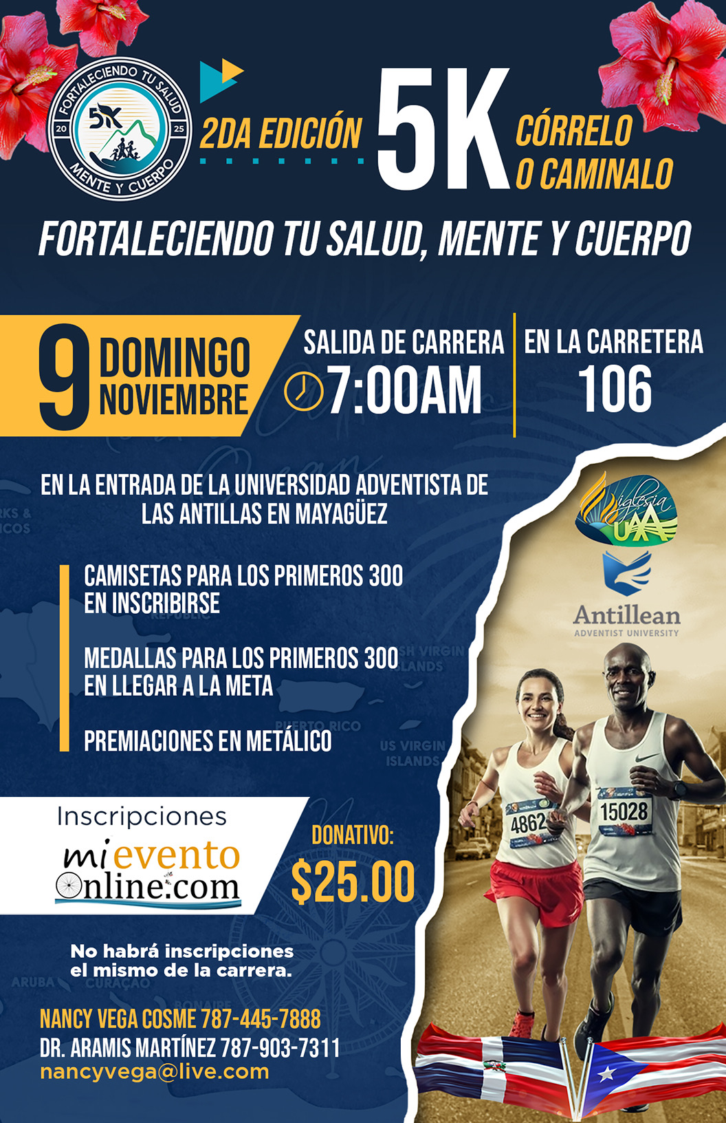 Segunda edición: 5K Fortaleciendo tu salud, mente y cuerpo en los predios de la Universidad Adventista de las Antillas en Mayaguez.
