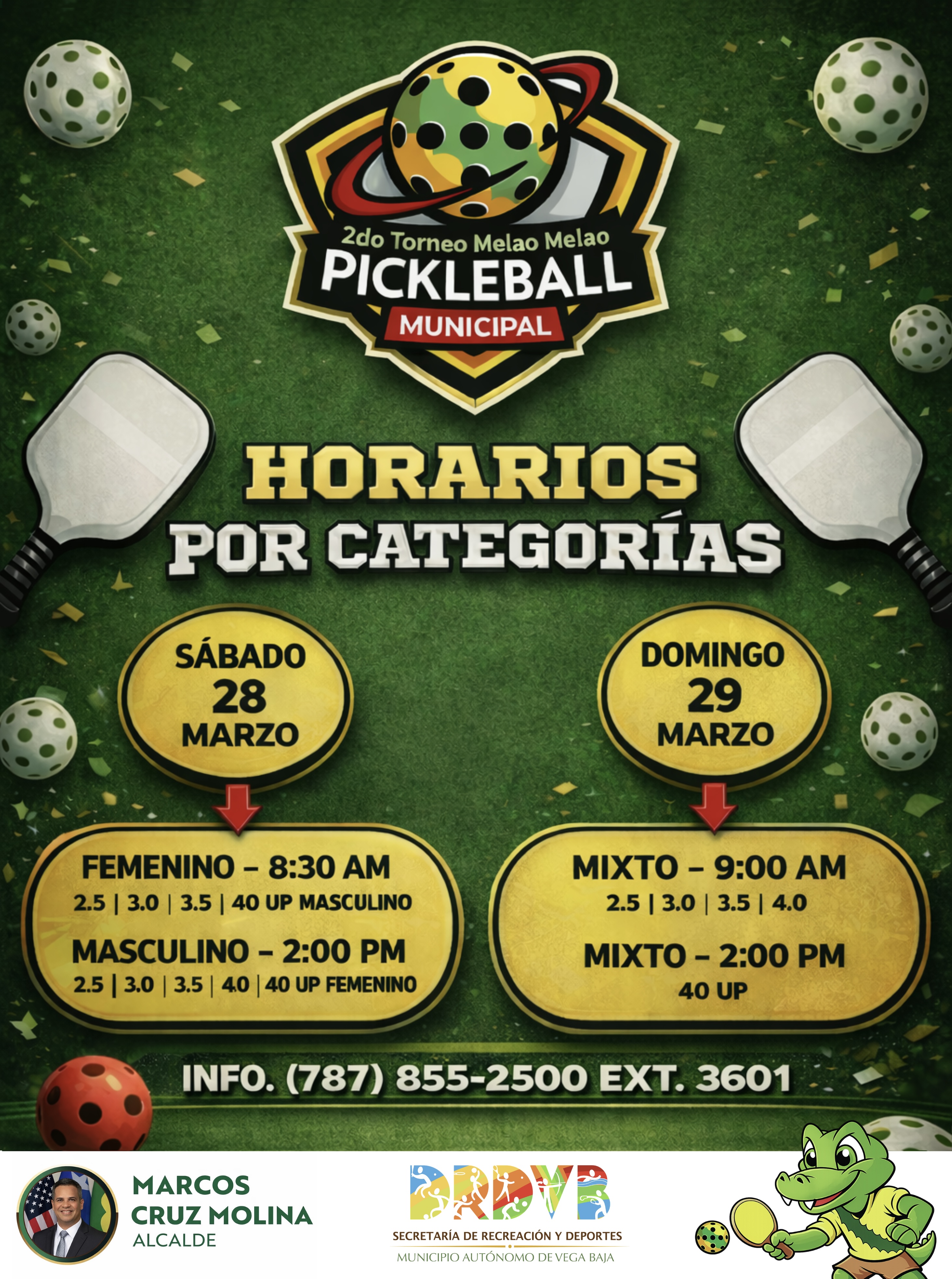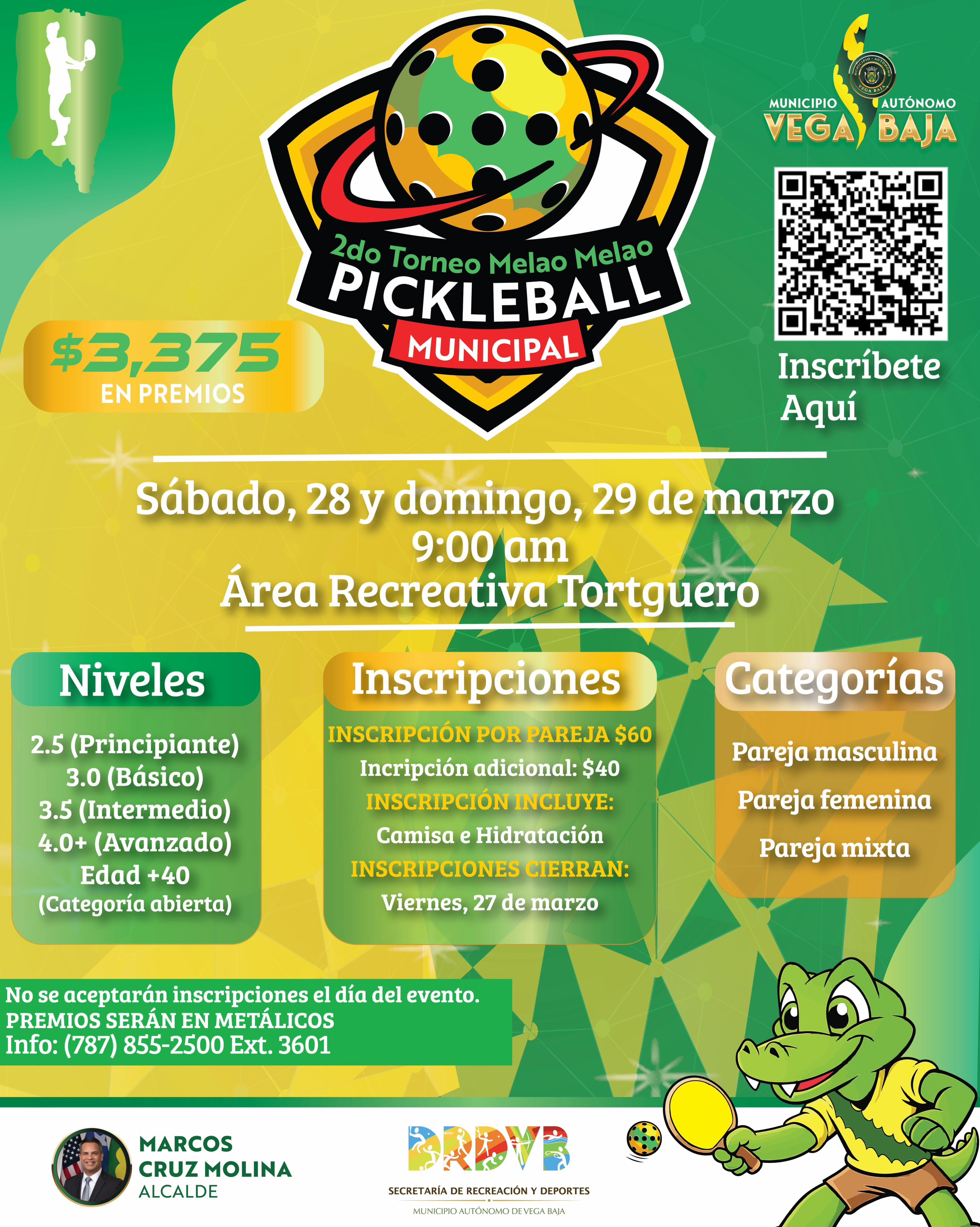 El Municipio Autónomo de Vega Baja y su oficina de Recreación y Deportes invitan a su segunda edición del Torneo Melao Melao: Pickleball!